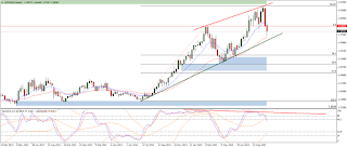 Tečaj je šel nazaj testirat vrat W vzorca in nato poletel proti padajoči trendni liniji. Ki pa je zaenkrat predstavljala močan odpor. Ob enem pa smo tudi prišli do Suplay območja, kar je že drugi odporni nivo.